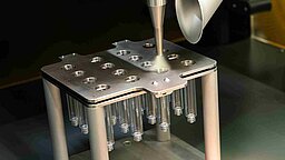 In the case of the syringe barrel, a nozzle dips into the barrel and atomizes silicone oil into fine droplets. It is important that these droplets spread out to form a closed, friction-reducing silicone oil film and also adhere sufficiently to the inner surface of the syringe barrel. The goal is to create a homogeneous silicone oil film with as little silicone oil as possible to minimize any potential interaction with the medicinal product. However, without special surface treatment, the COC will not wet sufficiently with the silicone oil. Pretreatment with Openair-Plasma, for example, can help here.