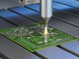 Pretreatment with the Openair-Plasma® jet PFW10 is done with very high contour accuracy and is potential-free (no transfer of voltage to the material). This type of plasma jet is mainly used when parts are to be plasma-treated with high process speed, high energy, or selectively when only a certain part of a work piece (e. g. a bonding groove) is to be treated. The Openair-Plasma® jets PFW10 and PFW20 are also well suited for the potential-free plasma treatment of very sensitive components, such as circuit boards.