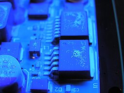 コンフォーマルコーティング工程でよく発生する不具合には、オレンジピール (表面のざらつき)、気泡、剥離、不均一な膜厚、クラックなどがあります。これらは、コーティング材料や回路基板、部品の品質、オーブン条件 (温度プロファイルなど)、不純物、さらには塗布プロセス自体が原因となる場合があります。