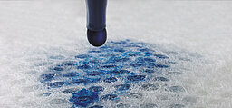大気圧プラズマ技術 Openair-Plasma®(オープンエアープラズマ) による前処理は、繊維や糸の表面エネルギーを高めることで濡れ性を大幅に向上させ、無溶剤タイプの染料を使用する場合でも、良好で耐久性のある密着性を実現します。また、撥水性や防汚性といった表面への機能性付与にも対応しています。Openair-Plasma®ノズルは、新しい高性能紡糸装置に求められる厳しい要求にも対応可能です。