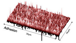 Openair-Plasma®を利用すれば、揮発成分の気化や、酸化反応による二酸化炭素や水の生成を利用して、アルミニウムなどの金属から不要な炭化水素(圧延オイルなど)を完璧に除去することができます。 研究機関NanoCraft社では、超高感度の化学力顕微鏡を使用し、Openair-Plasma®処理によるアルミニウムのクリーニングの効率性について調べました。 無極性炭化水素化合物を用いてプローブチップを改質し、イメージング媒体として水を用いて測定を行いました。その結果、プローブチップとの相互作用により、最も小さい不純物でも検出できることが確認されました。 一方、プラズマ活性化により、材料の表面張力を選択的に高めることができます。それにより親水性が大幅に強化されるため、コーティングの接着性が高められ、仕上げを大幅に改善することができます。